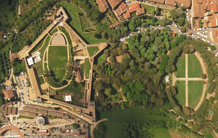 La Fortezza Medicea è un gigante di pietra che domina Arezzo dall’alto del Colle di San Donato. Con la sua pianta a pentagono irregolare e i suoi cinque bastioni, affonda le radici nella spianata del Prato, il parco di Arezzo.